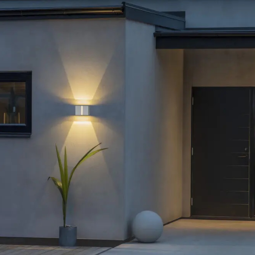Væglampe Gnosjö Konstsmide Pavia LED 4x3W er en elegant facadebelysning med LED-belysning. Den har et moderne design og belyser væggen både opad og nedad.
