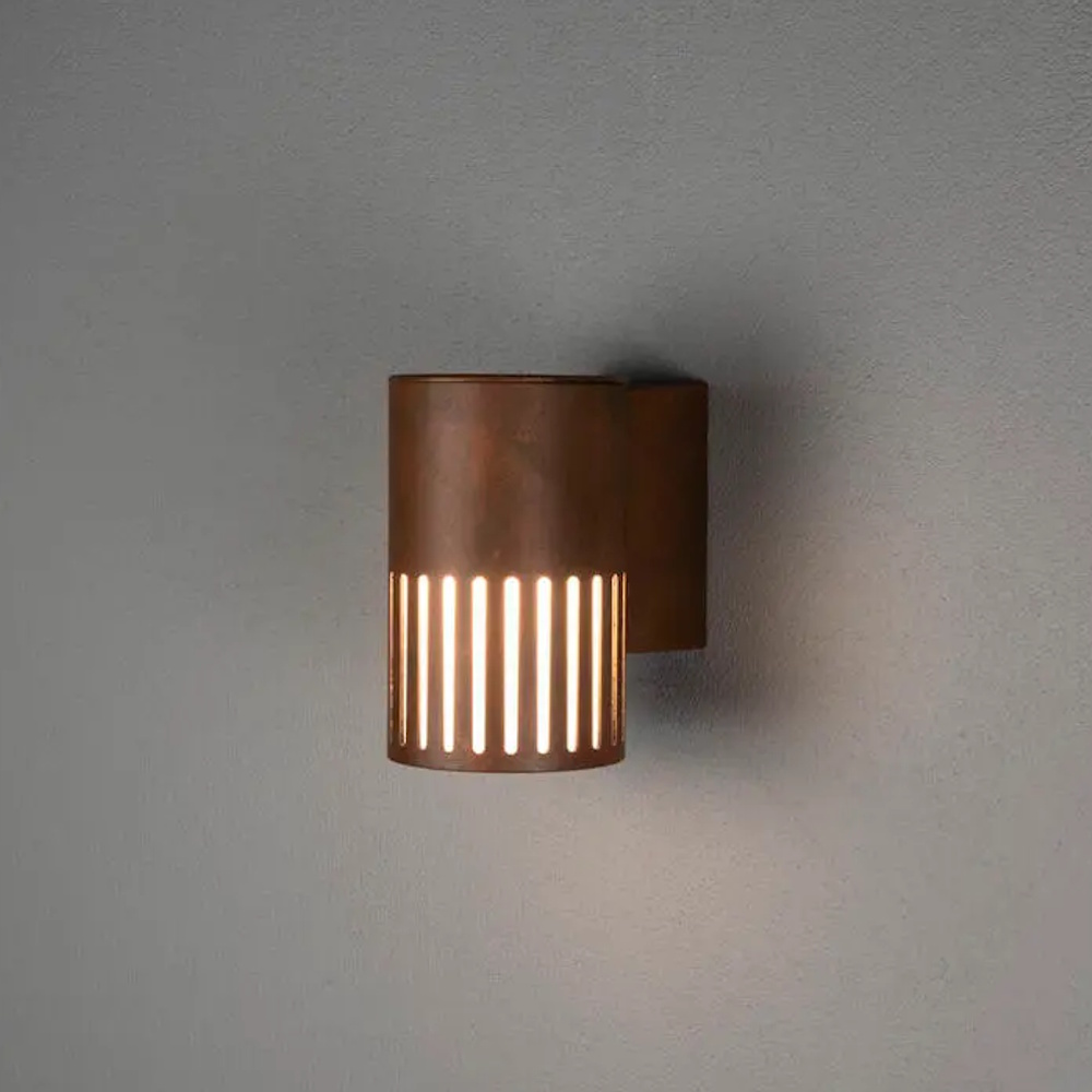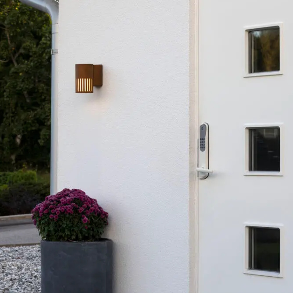 Lys din facade op med Pistoia. En moderne facadebelysning med et effektfuldt lysmønster i rustfarvet, malet aluminium og opalplastglas. Der findes også matchende pullerter til haven.
