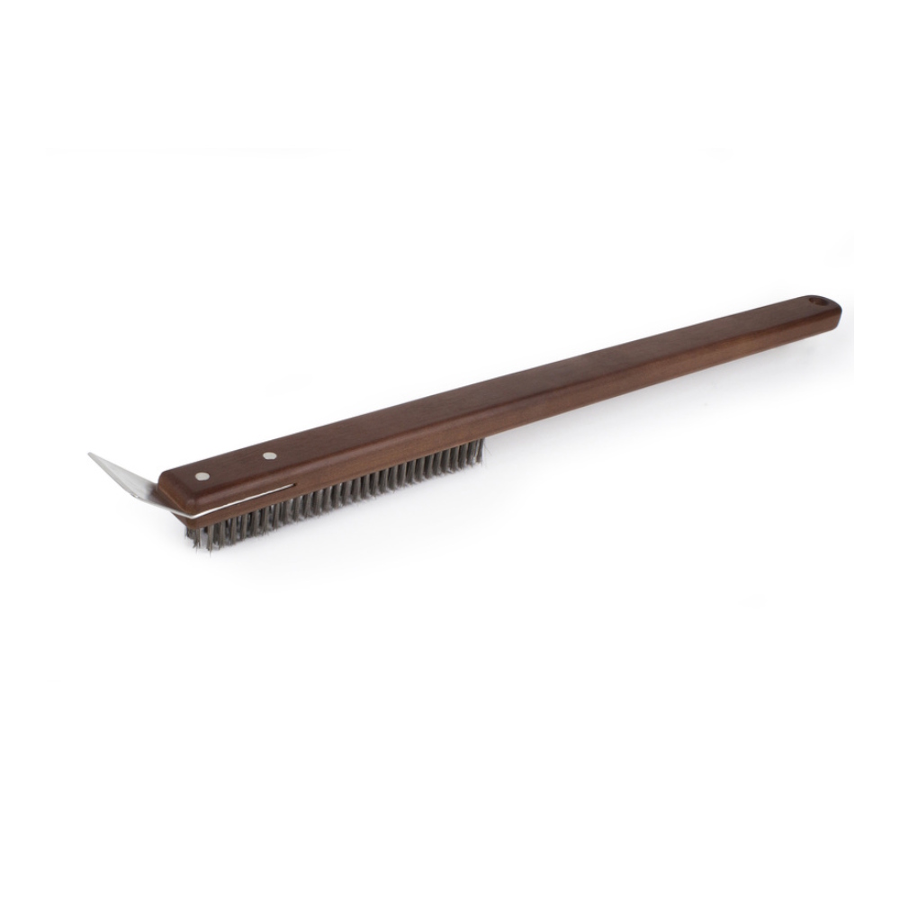 Børste med skraber, der gør det nemt at rengøre din pizzaovn, Hold din pizzaovn frisk med et praktisk 2-i-1-værktøj.