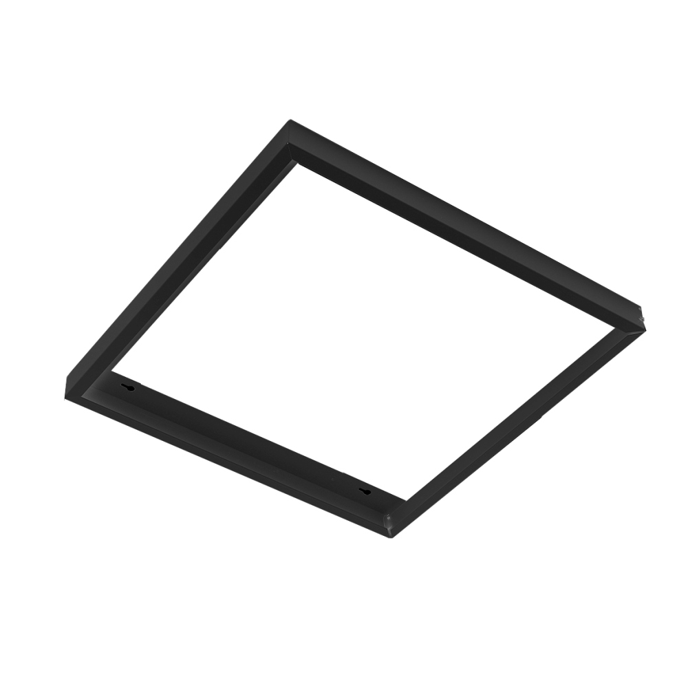 Ramme til montering af dikt tak af LED-paneler i dimensionerne 600x600mm. Rammen har en åbningsside med hængselfunktion og låseskrue. Rammen kan kombineres med vores cirkulære dækplade, som kan købes som tilbehør. Indvendig højde er 63mm, og rammen fås i hvid og sort.