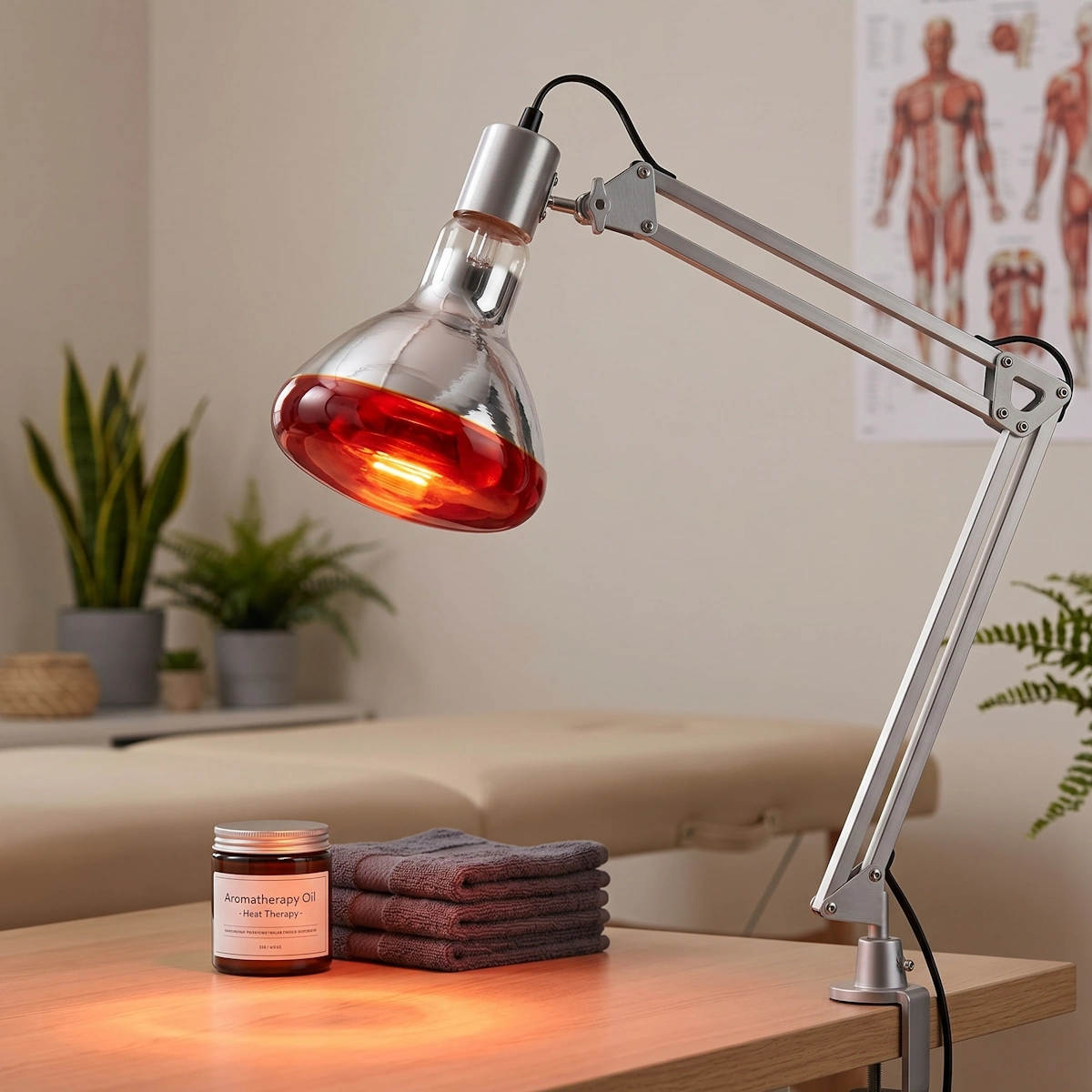 Kraftig infrarød varmelampe med rødt glas. Perfekt til dyrehold, tørring og lindring af muskelsmerter. Effektiv varmekilde. [Energiklass E]