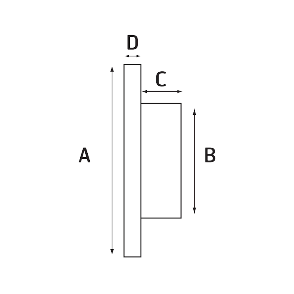 - Mål; A: 154mm, B: 100mm, C: 30mm, D: 15mm