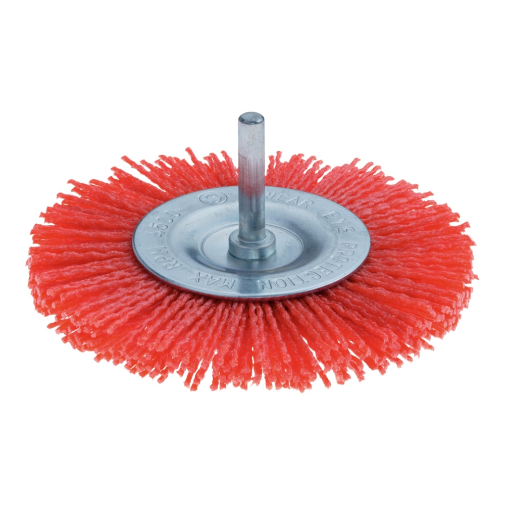 Rundbørste nylon til boremaskine med 6 mm holder. Til afgratning og fjernelse af gamle belægninger, samt til rengøring og mattering af materialer som syrebestandigt, ædelstål og rustfrit stål, metaller og plast. Perfekt til rengøring og polering af både metal- og træoverflader eller til fjernelse af maling.