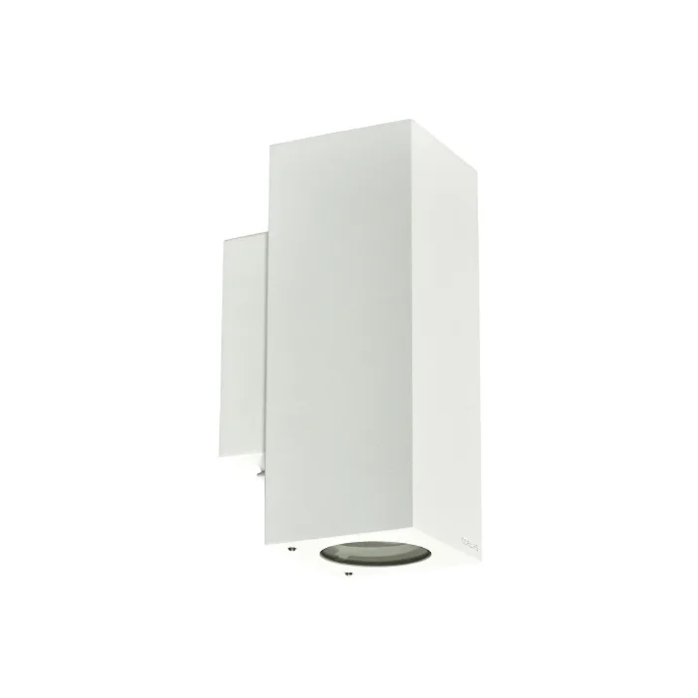 Ny opdateret version af Sandvik. Blændfrit op/ned lys. Fremstillet af støbt aluminium. Udskiftelige LED lyskilder. Fås i fire forskellige farver og med klart glas. Fås også med LED-modul. Hjørnebeslag fås som tilbehør. Sandvik White Up & Downlight 2x3,9W LED GU10 2700K 420 Lumen ud IP65 Klasse 1 Brændetid 40.000h IK08 Dæmpbar.