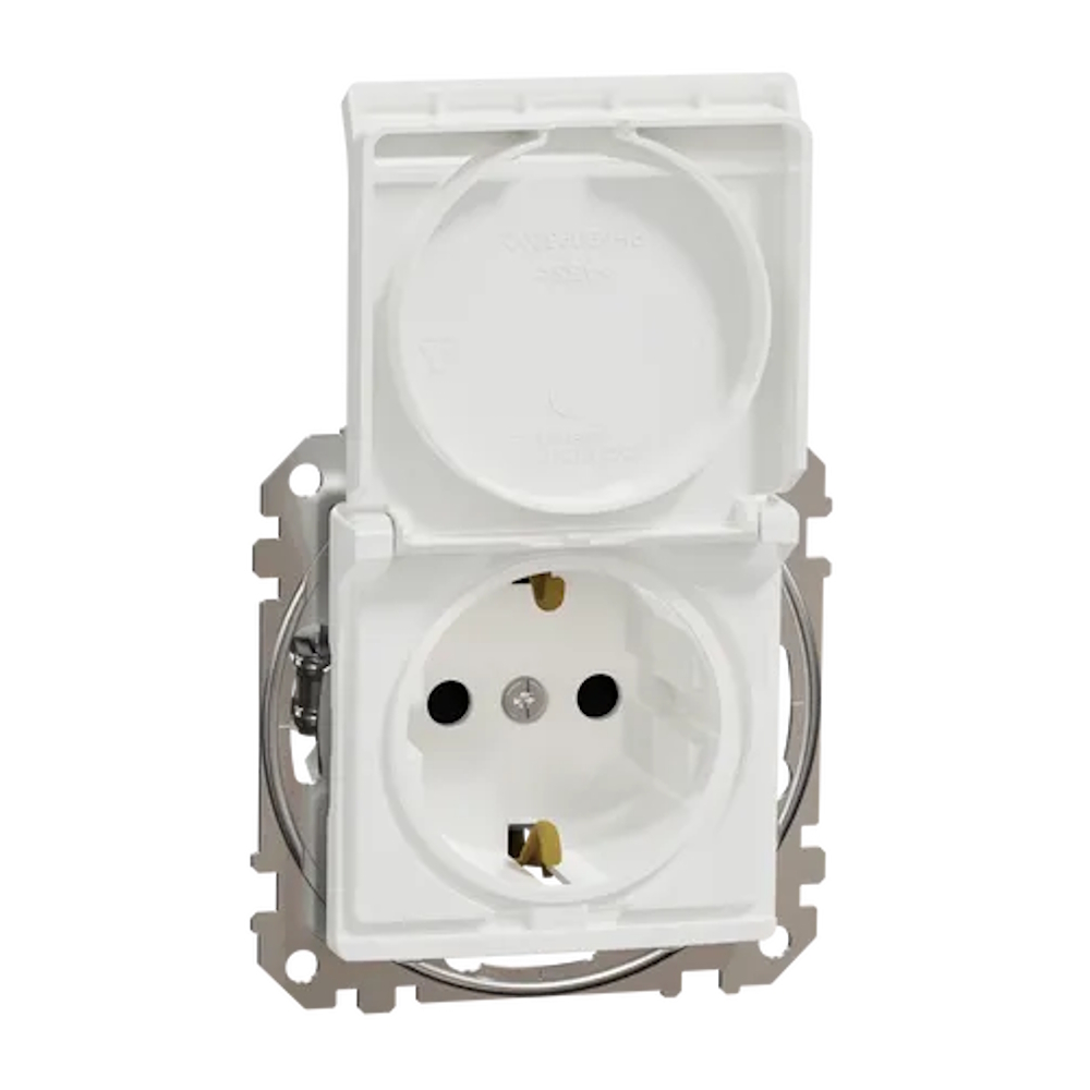 Schneider Electric Sedna Design Og Elements stikkontakt er en mekanisme med fastgørelsesramme i farve hvid med sidejord.