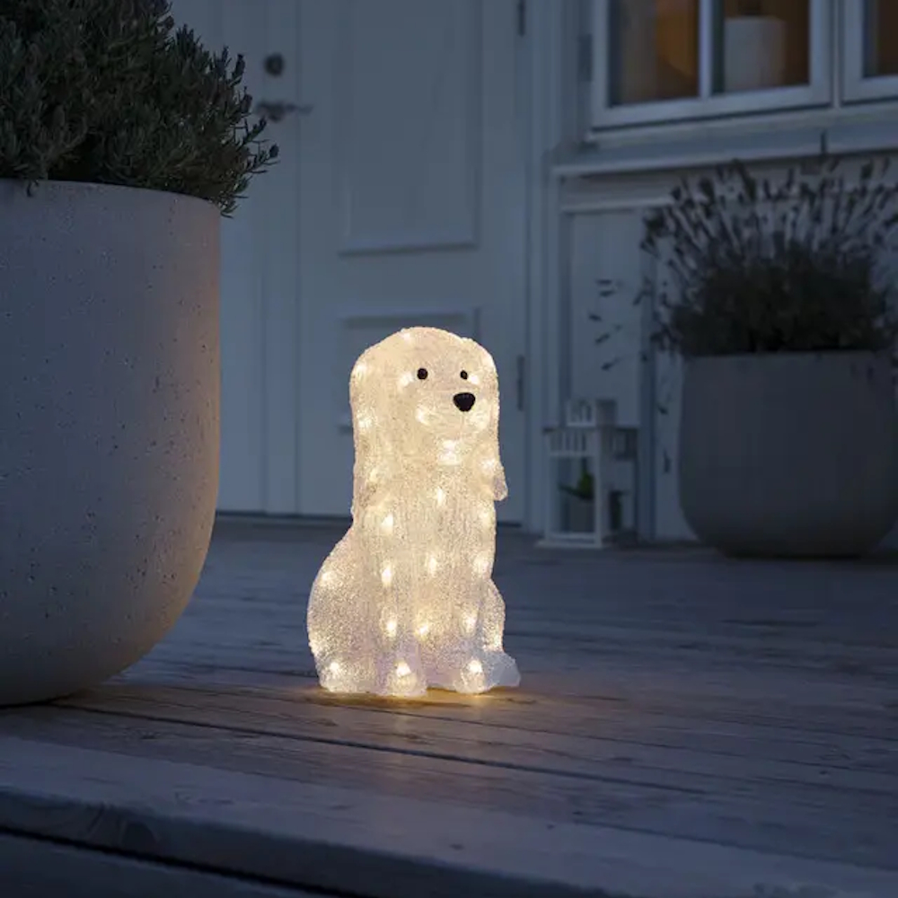 Sød, trofast hund i slidstærk akryl, der spreder en varm og indbydende glød, drevet af 24V transformer. [Energiklass F]