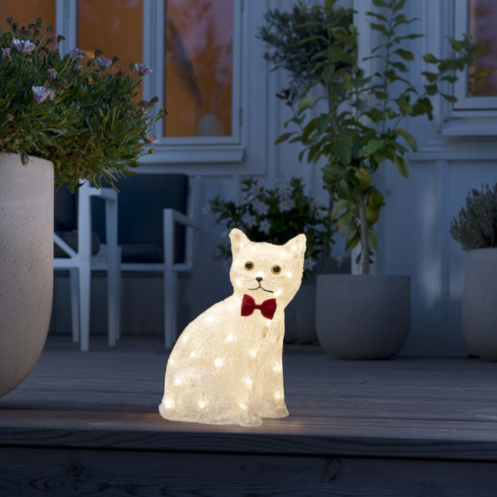 Sød kat i akryl, med 40stk holdbare og højkvalitets LED-lys, der er egnet til både indendørs og udendørs brug. [Energiklass G]