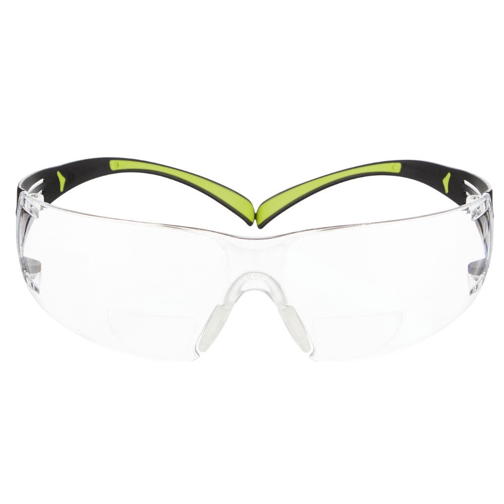 Brug 3M Sikkerhedsbriller med Læselinser SecureFit 415 i et wrap-around design for at beskytte dine øjne og forstørre små detaljer. De har en læselinse med +1,5 dioptriforstørrelse i bunden af linserne, hvilket gør det nemmere, når du skal læse og/eller udføre detaljeret arbejde. De vejer kun 19 g og er udstyret med 3M Pressure Diffusion Temple-teknologi, der gør det muligt for de polstrede stænger automatisk at justere sig til formen på brugerens hoved, hvilket giver en sikker og behagelig pasform. Bløde, justerbare næsepuder giver en endnu bedre pasform og reducerer risikoen for, at brillerne glider, når du bevæger hovedet. Brede, fleksible stænger fungerer godt sammen med høreværn. Wrap-around-designet giver brugeren et bredt synsfelt. De rammeløse polycarbonatlinser har en ridsefast/dugsikker belægning for længere holdbarhed og bedre synlighed. Polycarbonatlinserne blokerer 99,9% af UVA-, UVB- og UVC-stråler mellem 200 og 380 nm. Godkendt i henhold til den europæiske standard EN 166:2001.