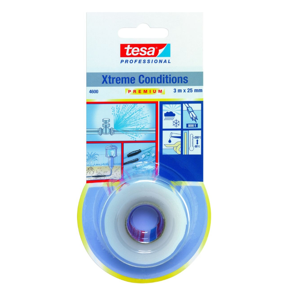 Selvvulkaniserende silikonetape Tesa. Tesa Xtreme Conditions, selvvulkaniserende silikonetape, der udelukkende klæber til sig selv. Til både permanent og midlertidig brug. Tapen er så fleksibel, at den kan formes til enhver overflade og form. Øjeblikkelig forsegling gennem selvvulkanisering. Efterlader ingen klæberester. Kan bruges til isolering af kabler og elektriske komponenter - op til 8000 volt. Kan modstå tryk på op til 12 bar. Kan også bruges under vand med øjeblikkelig effekt. Kan bruges ved ekstreme temperaturer (-60º C til 260º C).