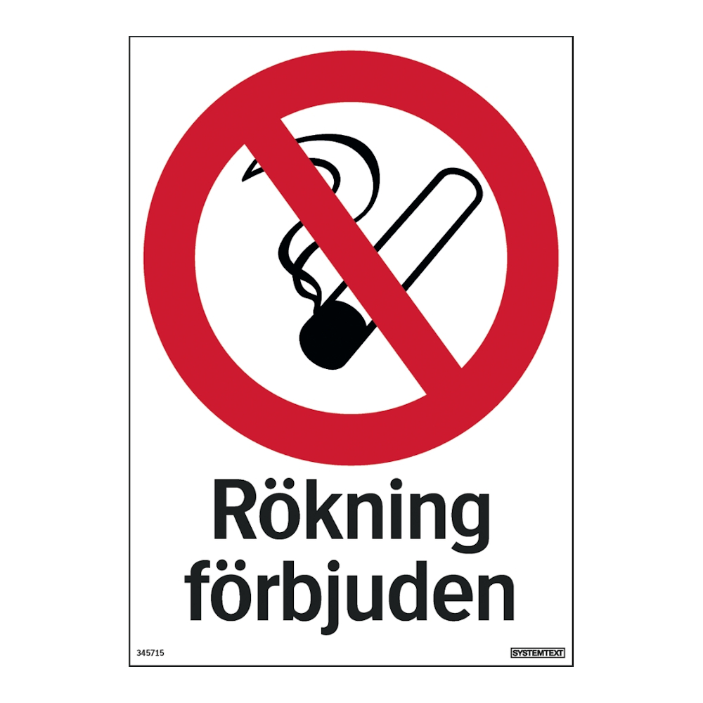 Skilt Rygning Forbudt 148x210mm Hård Plast Systemtext