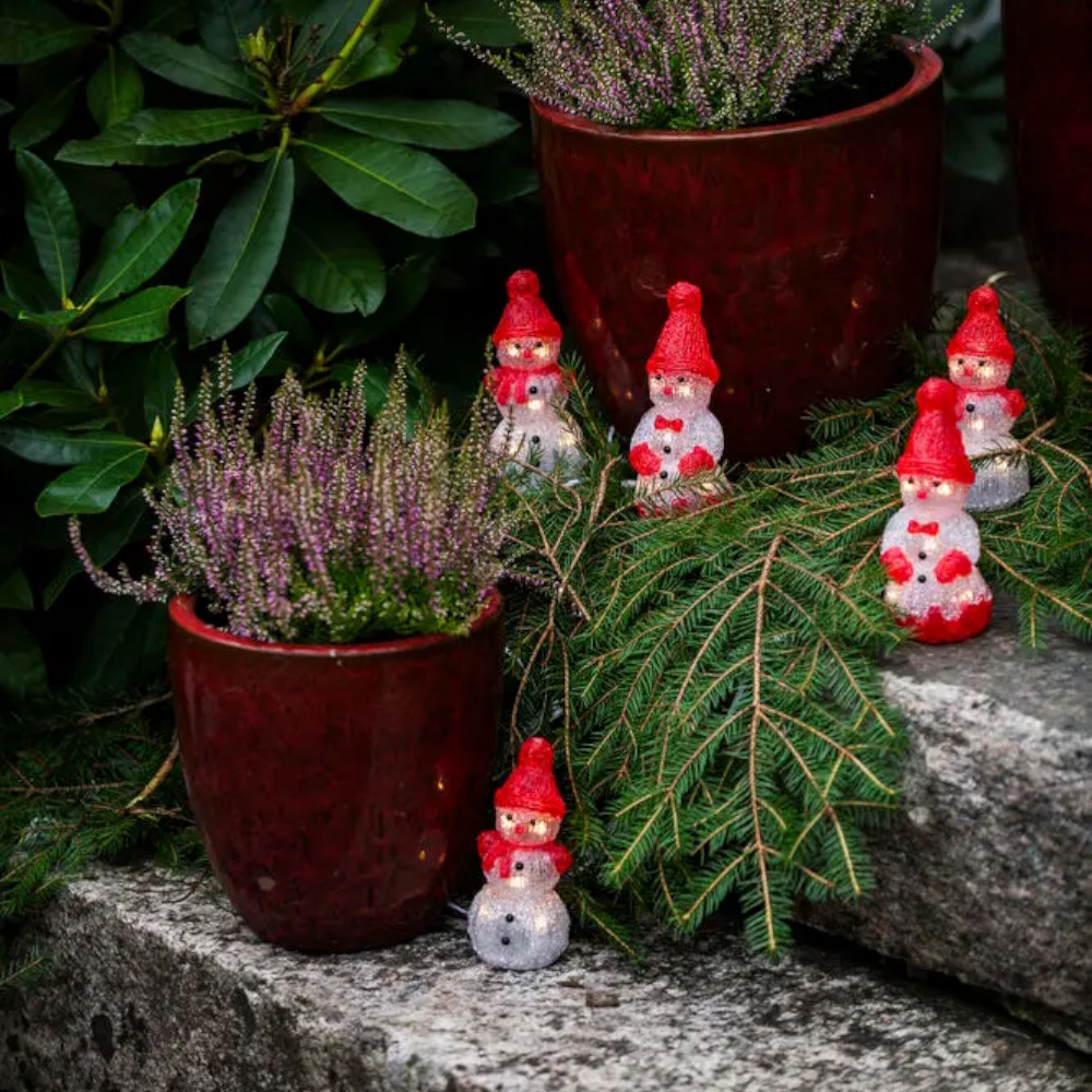 Små Snemænd 5stk Akryl 40 LED IP44 Klar/Rød Konstsmide