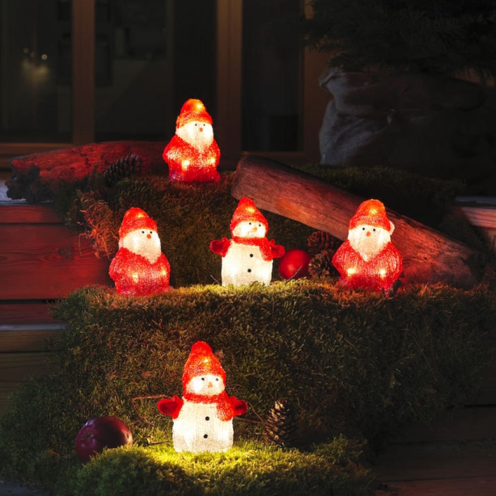 Små Snemænd Og Julemænd Akryl 5stk 40 Varm Hvid LED IP44 Klar/Rød Konstsmide
