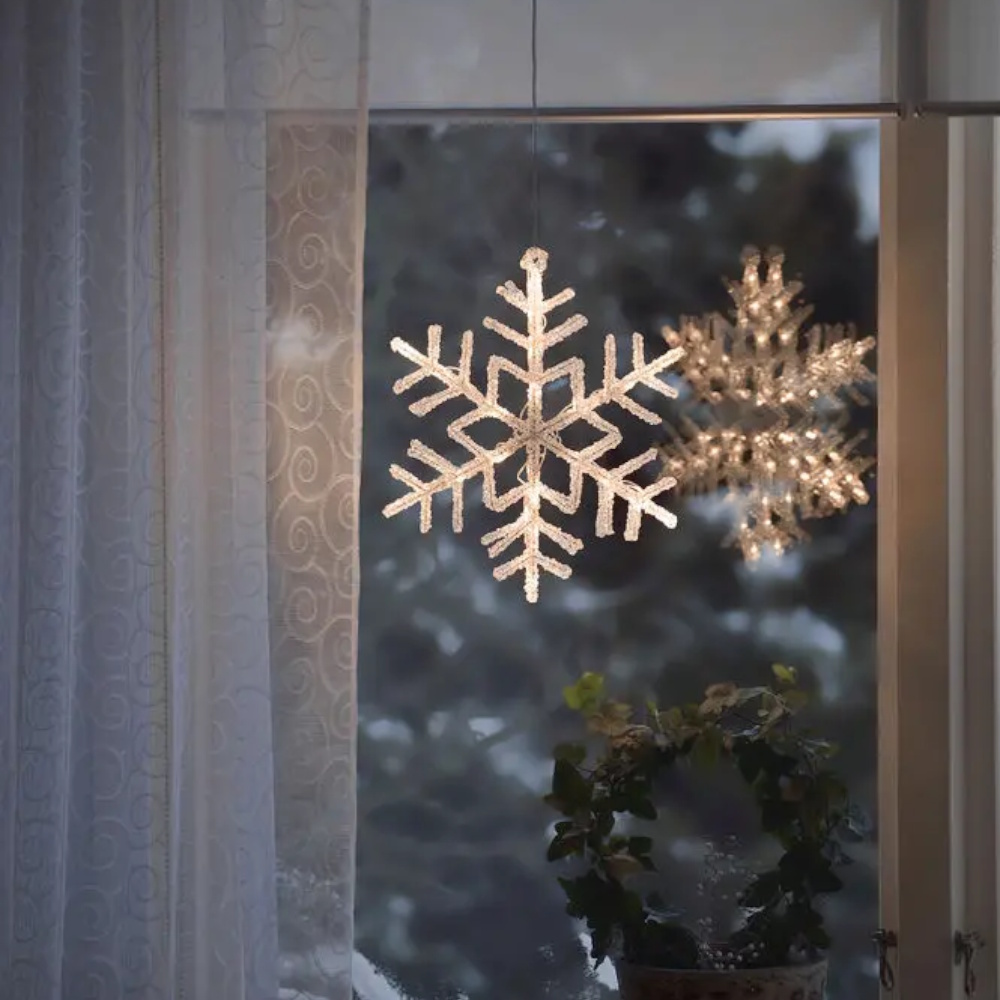 Lys dine vinduer op med denne smukke snefnug, der spreder en varm og indbydende glød. Denne dekorative snefnug er udstyret med 36 varme hvide LED-lys, der skaber en magisk atmosfære i dit hjem. Med en praktisk afbryder på ledningen kan du nemt tænde og slukke belysningen. En transformer medfølger, hvilket gør installationen problemfri og sikker. Perfekt til at give dit hjem en festlig stemning i vintermånederne!