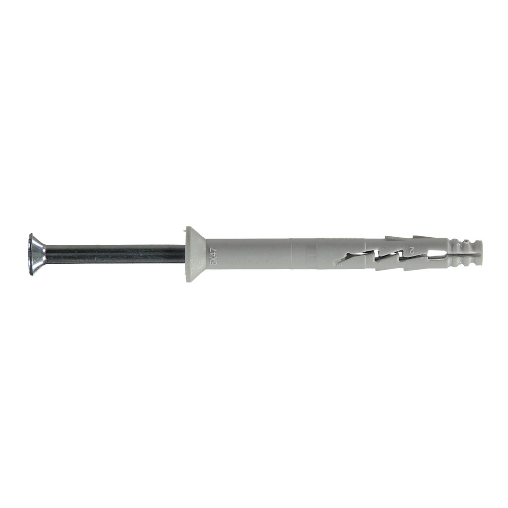 Et specielt knastgevind søm, formonteret i en prop, proppen har en kort ekspansionsdel til hårde homogene materialer.