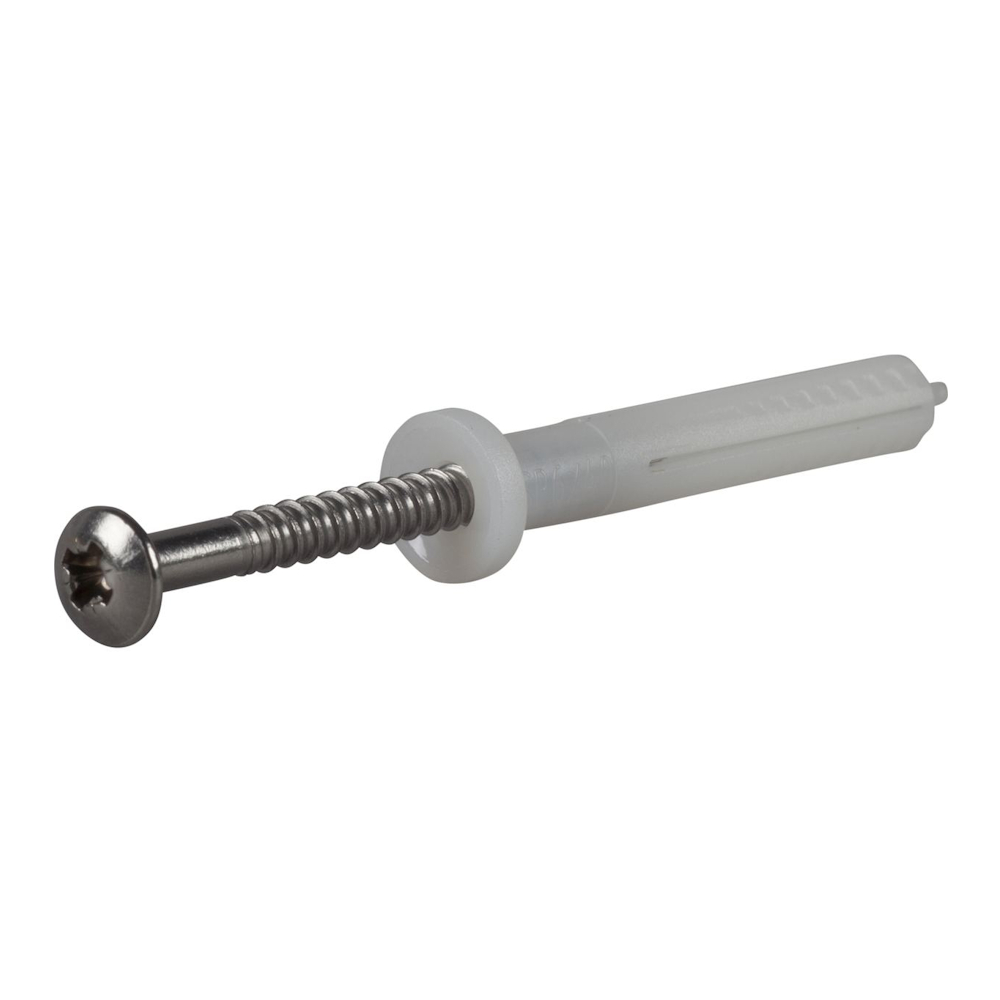 For dimension 10 mm er prop og søm adskilt i emballagen, og proppen skal derefter først presses ned i hullet, hvorefter sømmet slås i. Sømhovedet har et Pozidrive-kryds. Sømpropen kan derfor nemt afmonteres. Se monteringsvejledning.