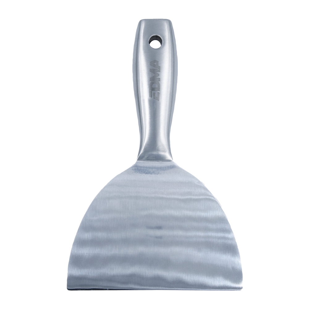Edma spartel i 100% rustfrit stål i ét stykke med fleksibelt blad i rustfrit stål. Bladet har let afrundede sider, hvilket betyder, at spartelen bliver på plads. Ergonomisk større håndtag med afrundede hjørner for minimal belastning. Fordelen ved, at spartelen er lavet udelukkende af rustfrit stål i ét stykke uden samlinger eller forskellige materialer, gør den ekstremt holdbar og nem at rengøre med en lang levetid uden rust.