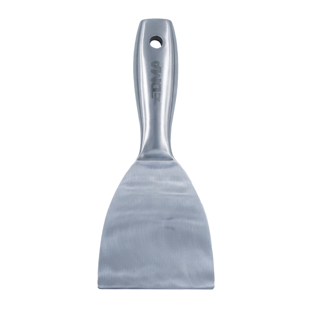 Edma spartel i 100% rustfrit stål i ét stykke med fleksibelt blad i rustfrit stål. Bladet har let afrundede sider, hvilket betyder, at spartelen bliver på plads. Ergonomisk, større håndtag med afrundede hjørner for minimal belastning. Fordelen ved, at spartelen er lavet udelukkende af rustfrit stål i ét stykke uden samlinger eller forskellige materialer, gør den ekstremt holdbar og nem at rengøre med en lang levetid uden rust.