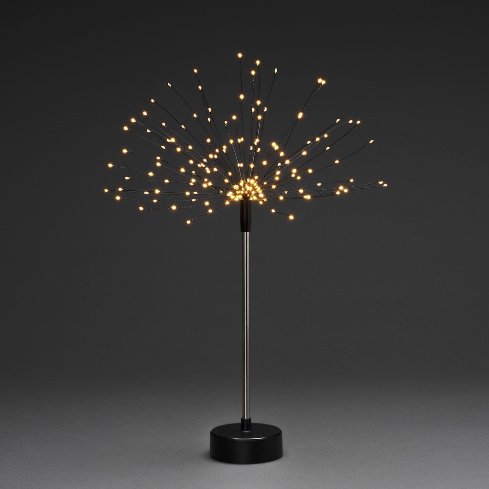 Borddekoration til indendørs brug i metal med hvid base, 160 gule LED-lys, drevet af 3xAA-batterier.
