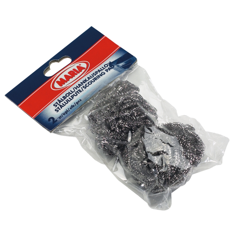 Kugle af rustfrit stål. Rengør gryder og pander uden at ridse. Bør ikke bruges på coatede beholdere som f.eks. teflon.