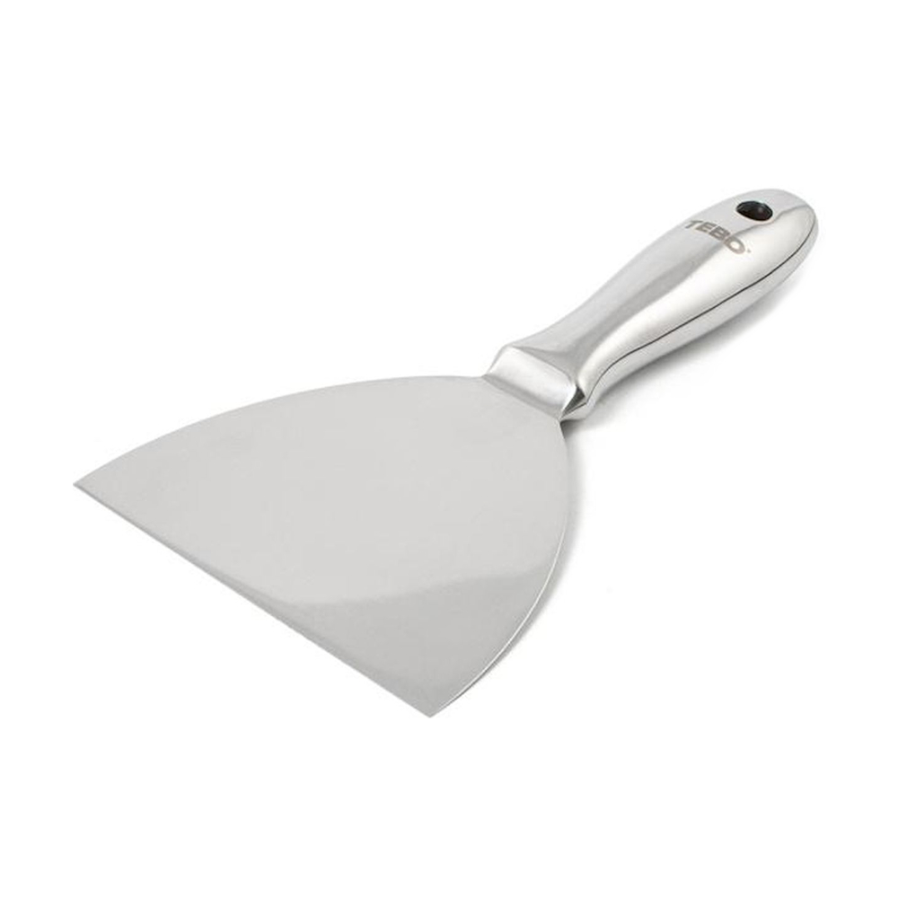 Helstøbt rustfri stålspartel. Det spejlpolerede blad forhindrer ophobning af materiale og forenkler rengøringen. Bladet har god fleksibilitet, og håndtagets grebprofil er designet til at reducere risikoen for håndtræthed. Bruges f.eks. til at påføre spartel, rengøre pudskanter, skrabe maling, restaurere synlige skruer, til at sætte og skære stofbånd osv.