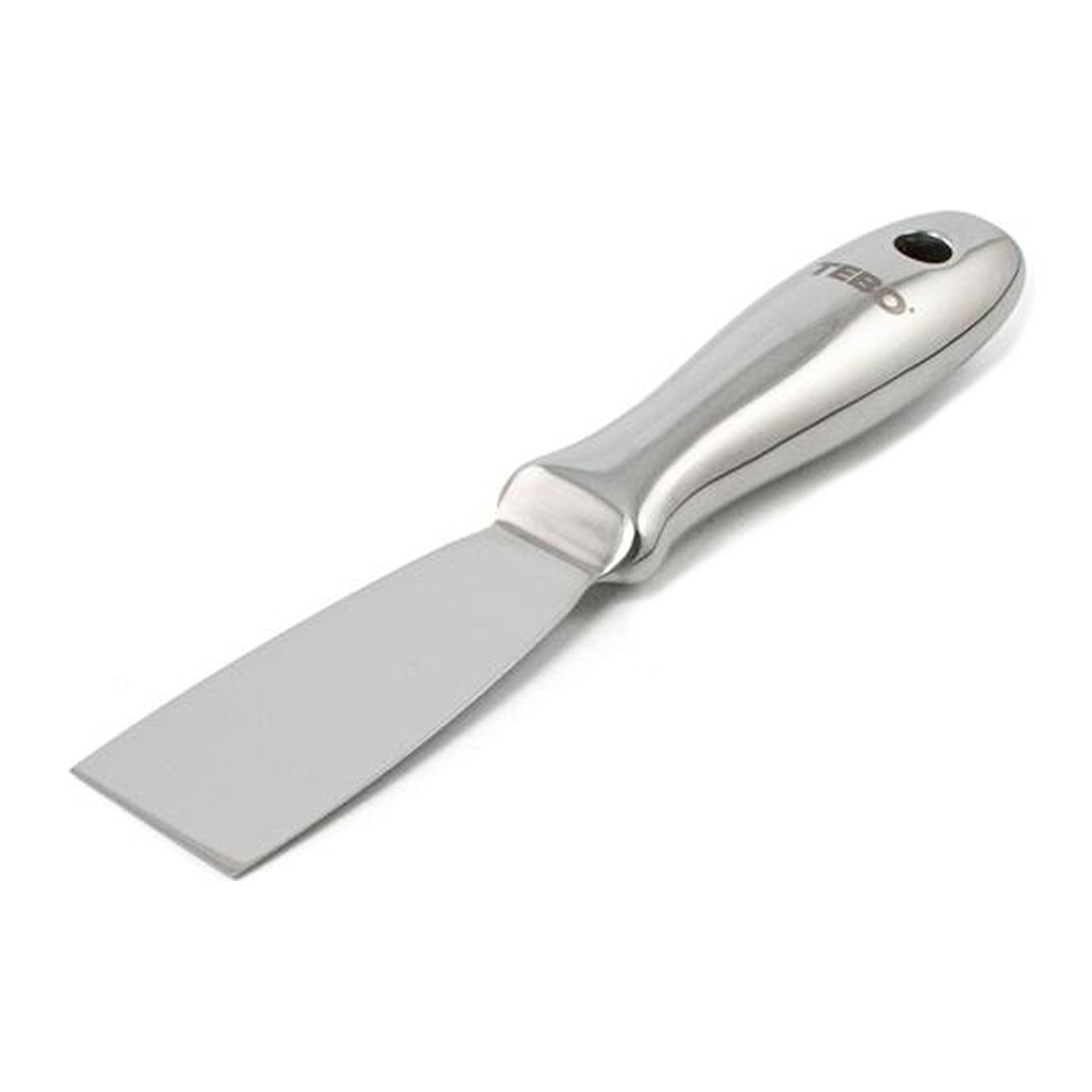 Helstøbt rustfri stålspartel. Det spejlpolerede blad forhindrer ophobning af materiale og forenkler rengøringen. Bladet har god fleksibilitet, og håndtagets grebprofil er designet til at reducere risikoen for håndtræthed. Bruges f.eks. til at påføre spartel, rengøre pudskanter, skrabe maling, restaurere synlige skruer, til at sætte og skære stofbånd osv.