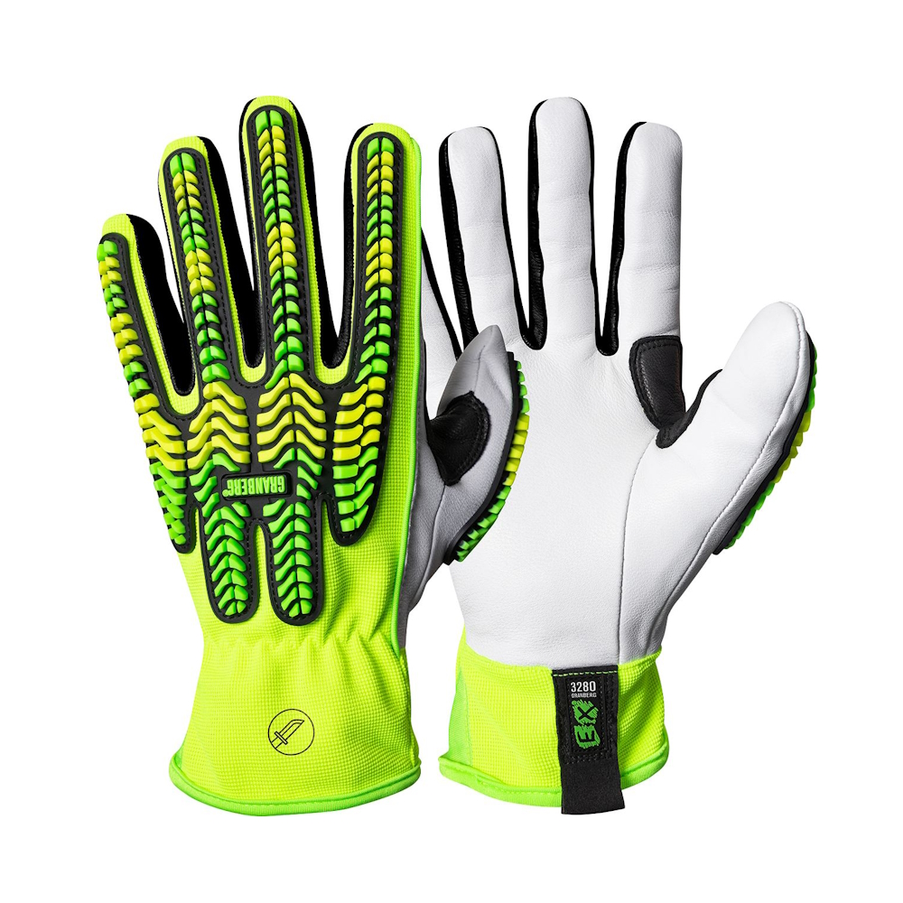 Stødbeskyttelseshandsker med skærebeskyttelse i håndfladen og på fingrene. Blødt og slidstærkt gedeskind i håndfladen giver et godt greb. Stødbeskyttelse og spandex på oversiden af hånden og en elastisk manchet, der gør, at handsken sidder behageligt på hånden. Beskytter mod kontaktvarme op til 100ºC i 15 sekunder.