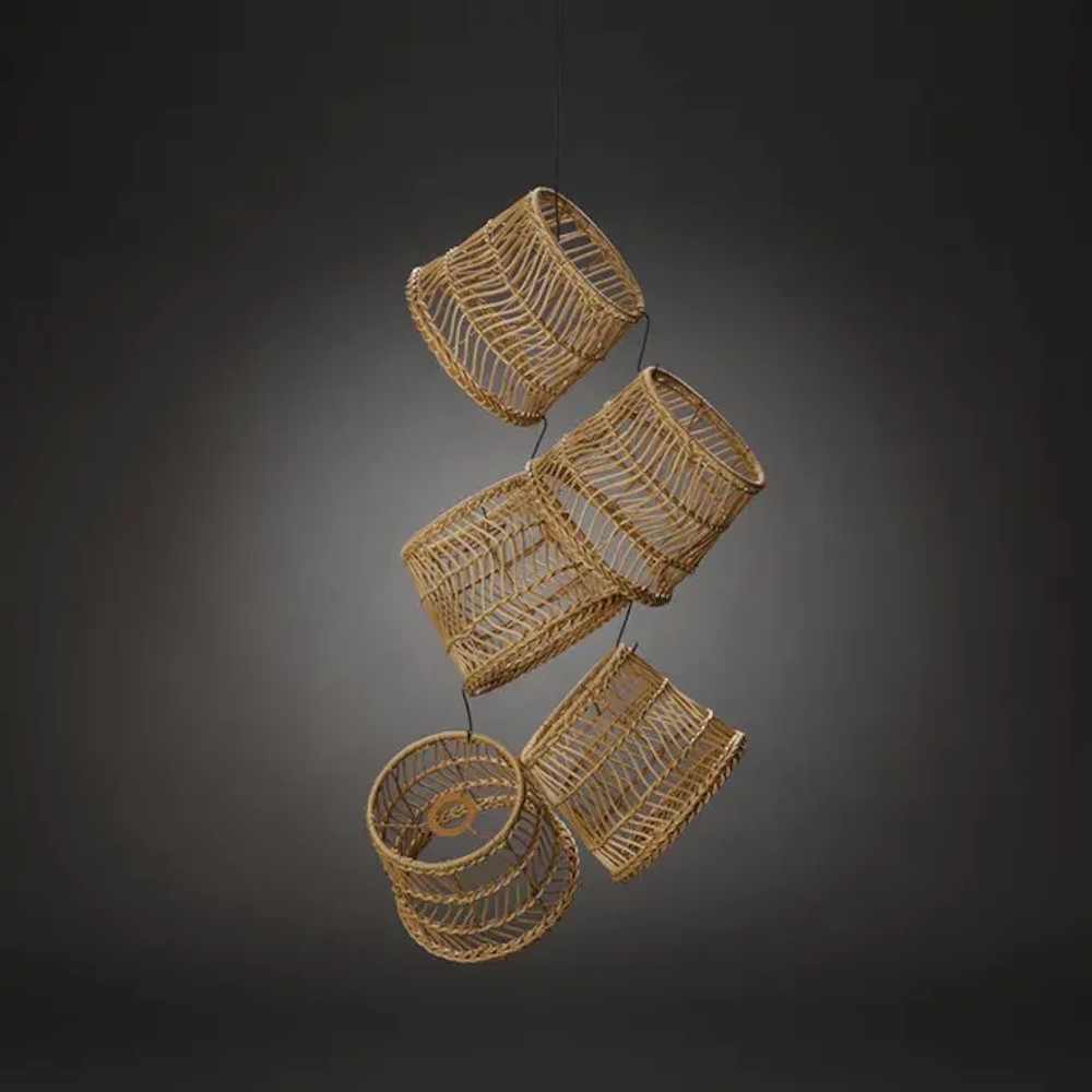 Stor lampeskærm i naturlig rotting. 5 stk. naturfarvede rottingskærme, 5 stk. pakke. Passer til Party sling med lampe med plastikkugle og E27-fatning.