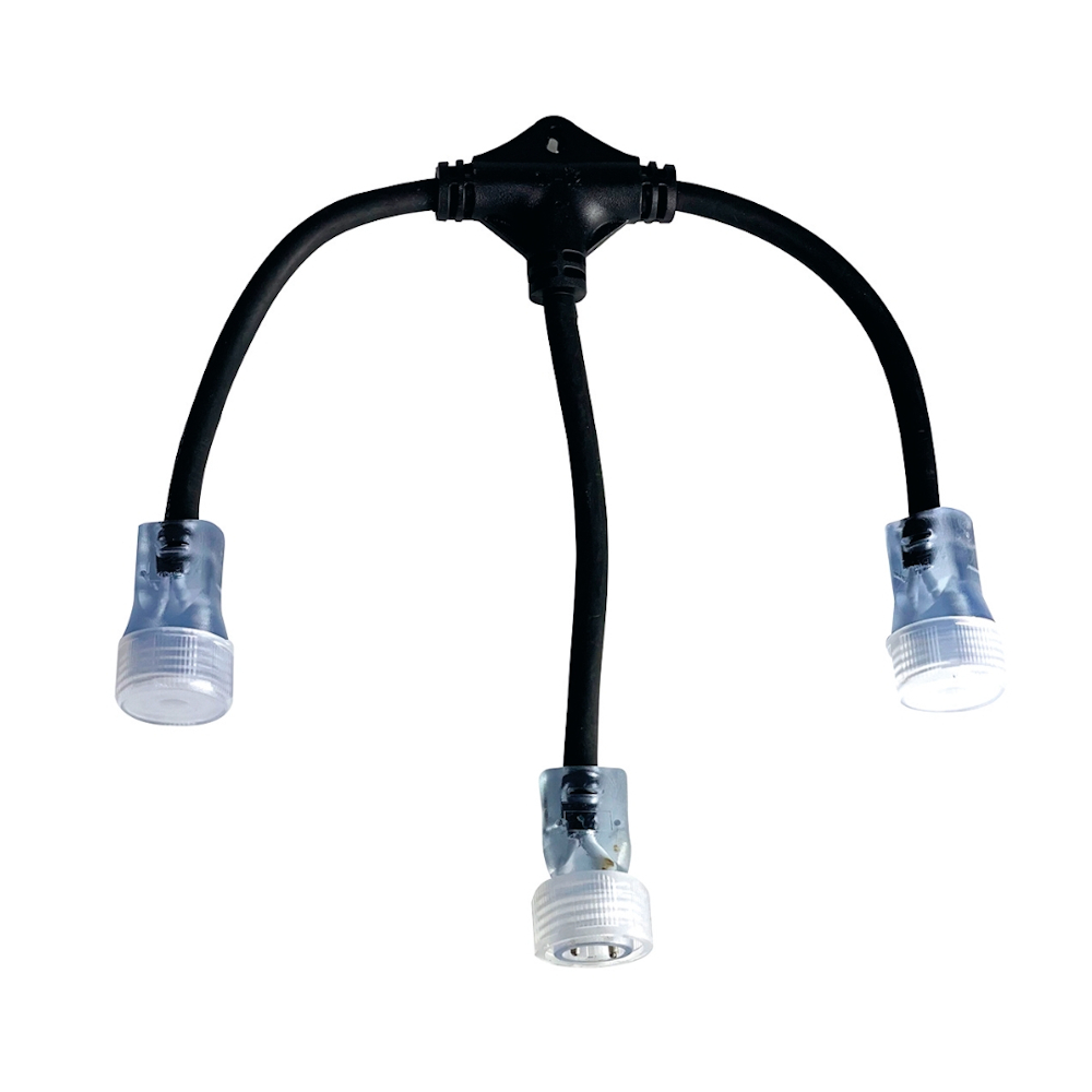 Blue Electric Flex-Line V2.0 T-stik giver dig mulighed for at forgrene to ekstra LED-strimler for bedre spredning i et rum eller muligheden for at komme ind i flere rum med kun én stikkontakt. Kun beregnet til Blue Electrics Flex-Line LED-strimler.