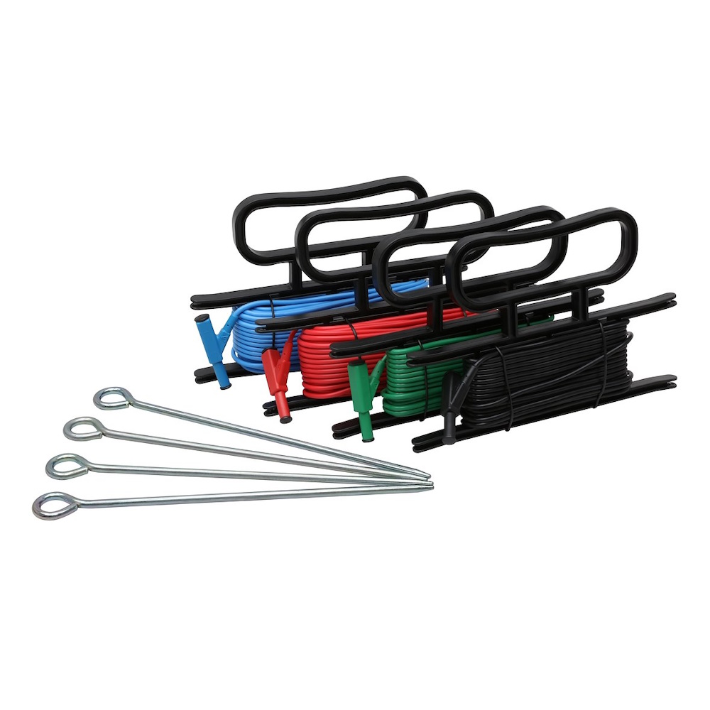 Tilbehør til multifunktionstestere. Indeholder 4 testledninger 2x20 m og 2x5 m og 4 jordspyd.