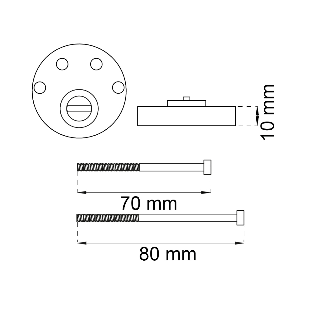 Skruesæt til montering af en dobbelt rund sikkerhedscylinder. Indeholder 1 cylinderforlænger 10mm og cylinderskruer 70 og 80mm i hærdet stål. Leveres også med messingkugler, der fungerer som dækpropper og forhindrer uønsket afmontering af skruerne. Kuglerne skal slås ind i skruebitsrillerne og bores ud ved afmontering. Hvis dørens B-mål overstiger 27mm, anvendes cylinderforlængere og 70mm skruer. BEMÆRK! For at en sikkerhedscylinder kan bevare sin sikkerhedsklassificering, skal der anvendes cylinderskruer af hærdet stål.