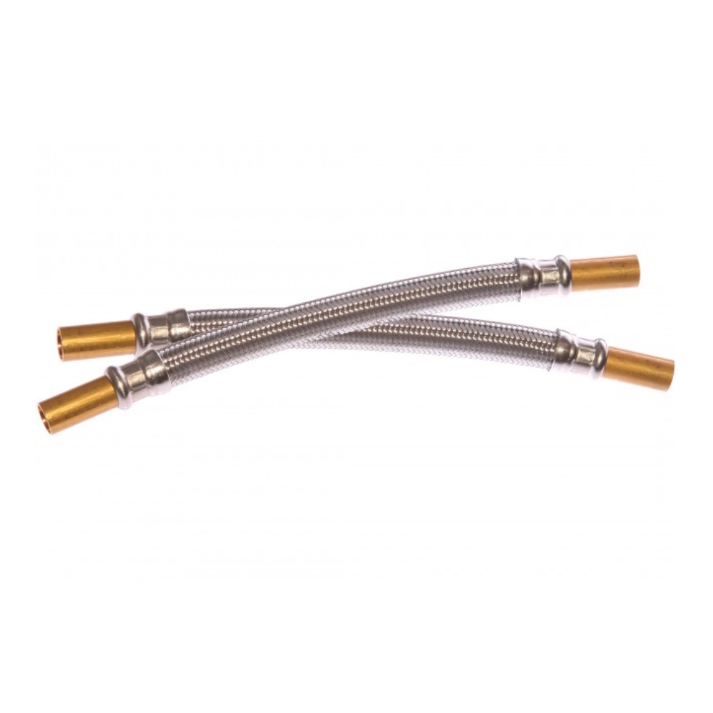 Fleksibel tilslutningsslange med ekstra lange glatte ender til drikkevandsinstallationer, maksimal bøjningsradius 45mm.