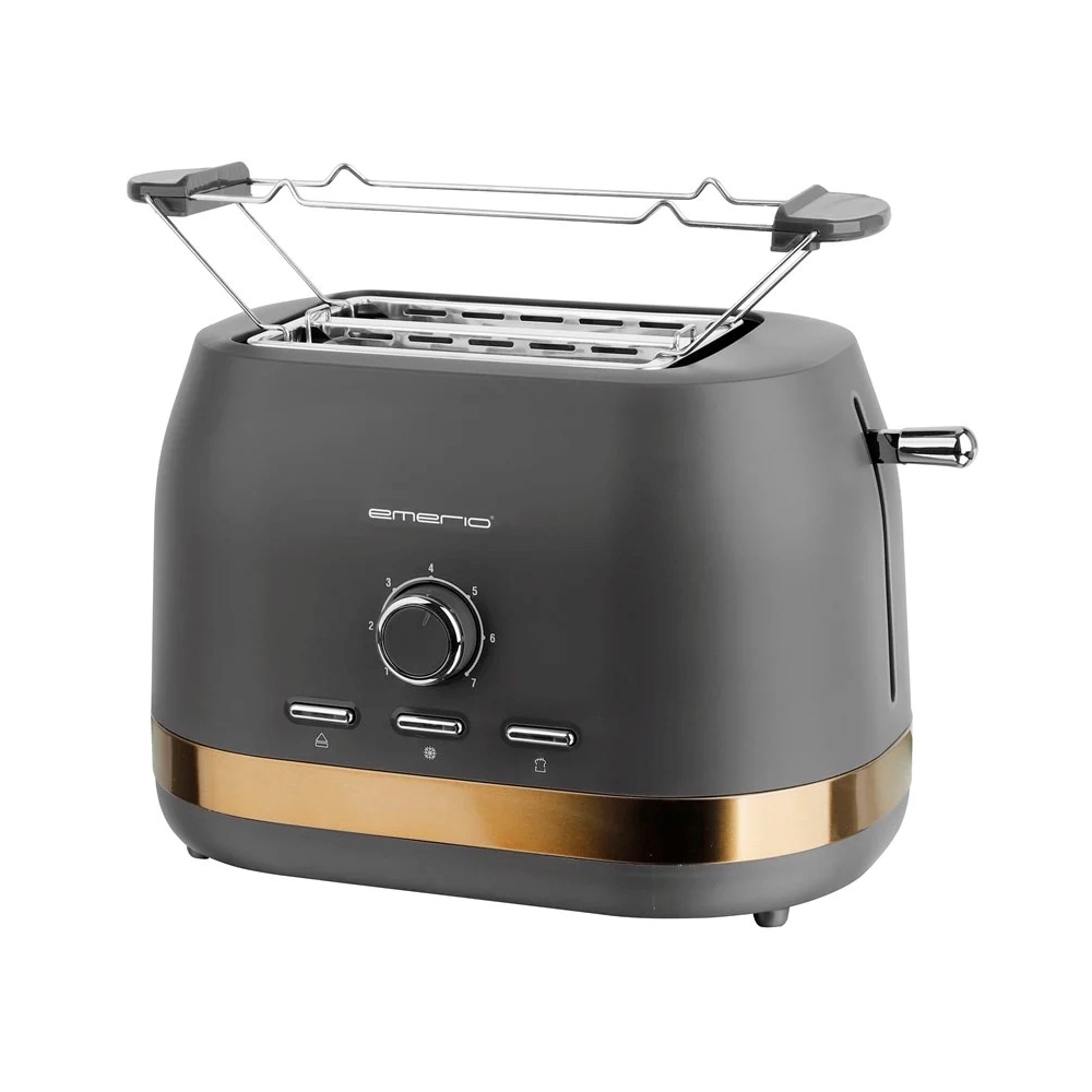 Stilfuld og funktionel to-skive brødrister designet til at give perfekt ristede brødskiver hver morgen. Den kombinerer et moderne gråt ydre med elegante gulddetaljer for et attraktivt design i køkkenet. Med syv justerbare ristningsniveauer kan du vælge, hvor let eller sprødt du ønsker dit brød, fra gyldent til ekstra sprødt. Den indbyggede automatiske centreringsfunktion sikrer, at brødskiverne altid er placeret korrekt for jævn ristning hver gang. Praktiske funktioner som knapper til annullering, genopvarmning og optøning gør ristningen gnidningsløs og fleksibel. Den aftagelige krummebakke gør rengøringen nemmere, og skridsikre fødder giver stabilitet på køkkenbordet.