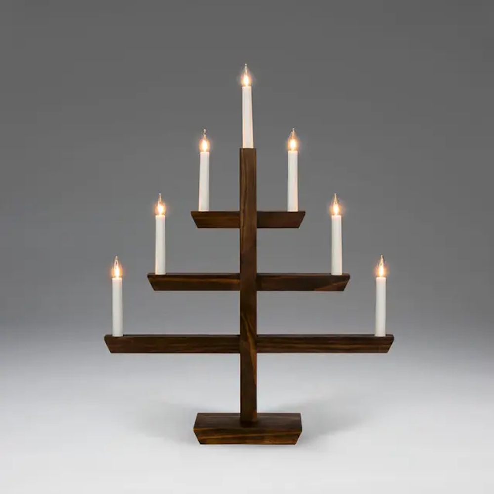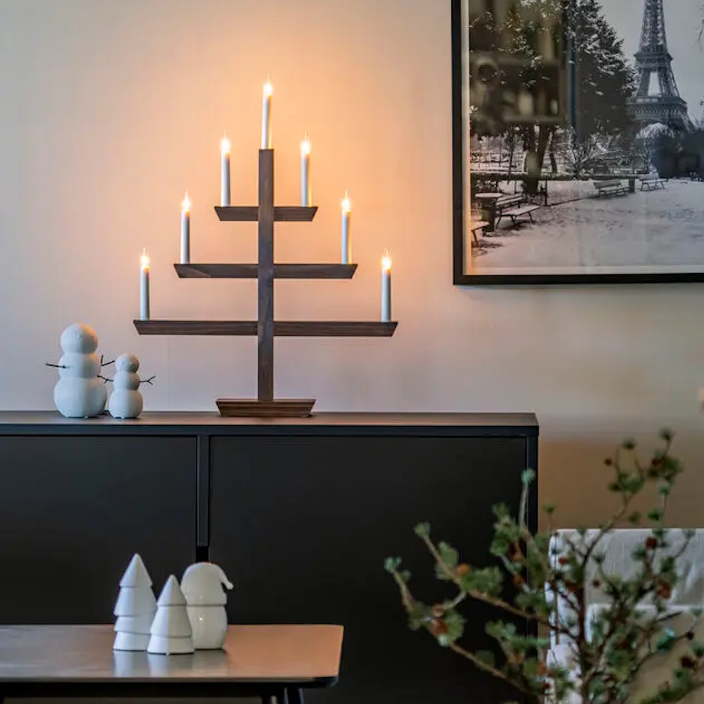 Elegant adventsstage i bejdset træ, der spreder et varmt og stemningsfuldt lys i årets mørkeste tid. Med syv lys og et tidløst design passer den lige så fint i vinduet som på bordet - en elsket juledekoration, der skaber hygge og tradition, år efter år.