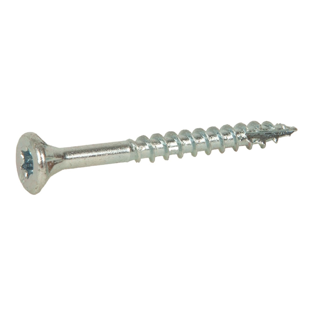 Skruen er lavet af hærdet stål med en blankforzinket overfladebehandling, C1, Den er udstyret med en TX-holder/bit.