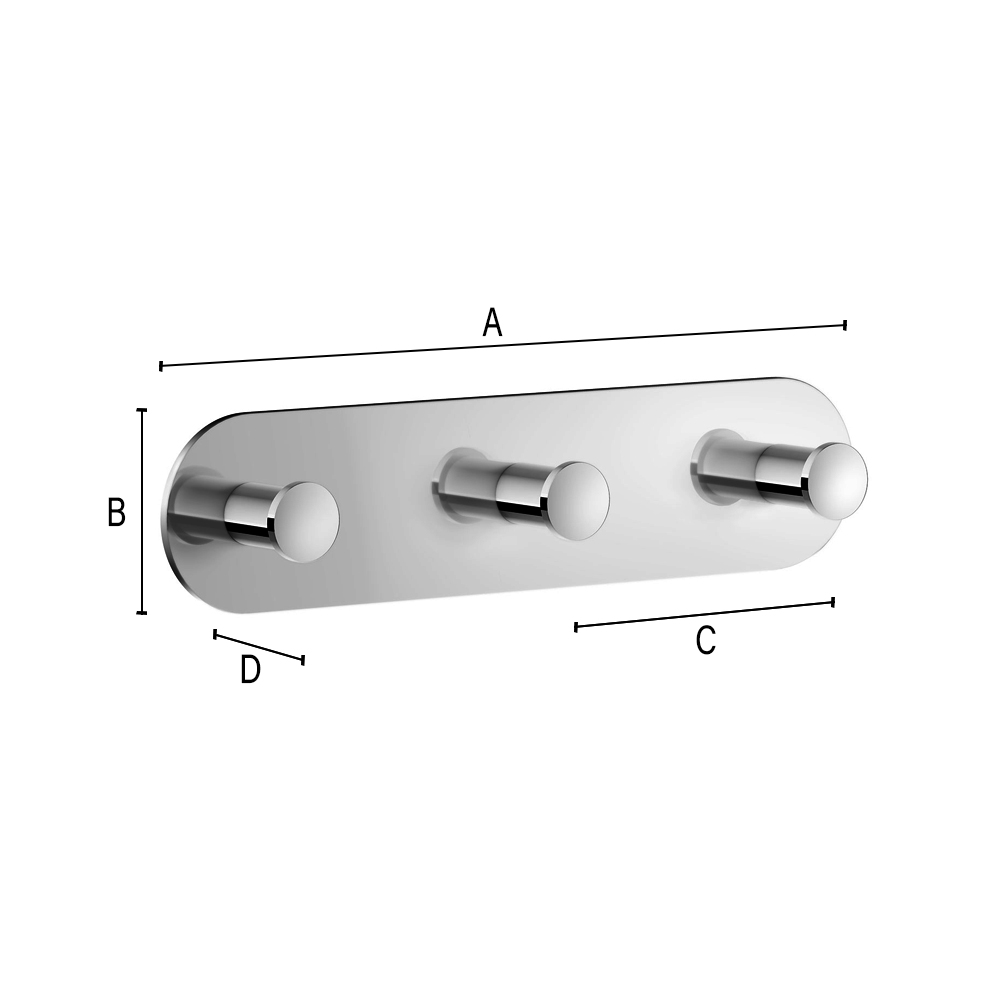 Stilfuld tredobbelt krog med poleret forkromet finish. Krogen tilhører vores selvklæbende DOT-serie. 10 års garanti.