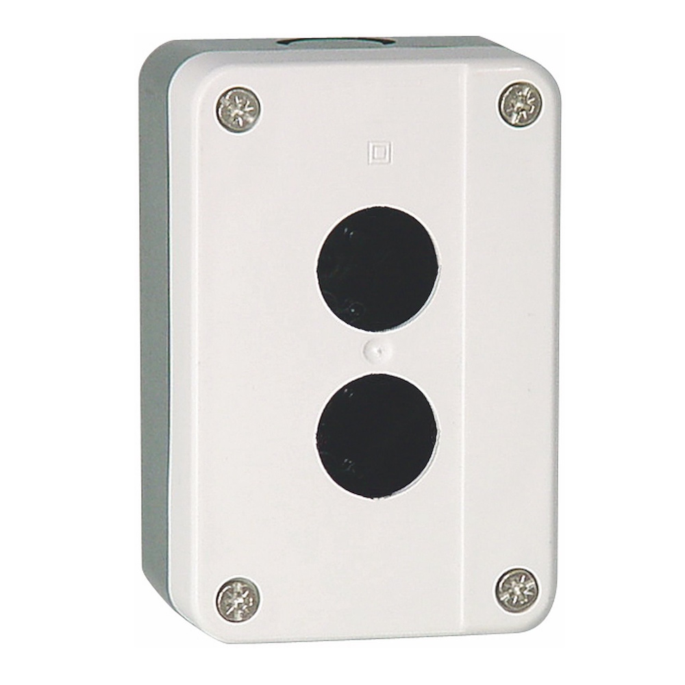 Trykknapbokse i termoplast med monteringshuller til trykknapper diameter 22,5 mm, udbrydningsåbninger i sider og bund.