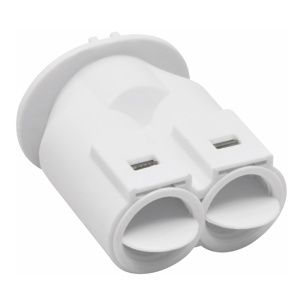 Tud 2x16mm til Twistline Pro 42 er et halogenfrit tilbehør, der giver to indgange til 16 mm rør til Twistline Pro 42-dåser, hvilket forenkler kabel- og rørtilslutninger under installationen.