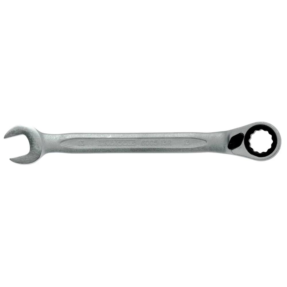 U-ring skraldenøgle lavet af kromvanadiumstål. Kombineret bloknøgle og 12-punkts ringskraldenøgle. Skraldenøglefunktionen kan indstilles til højre- eller venstregående træk. 12-punkts ringhovedet er bøjet i en 15° vinkel. Samme nøglebredde i begge ender. Matforkromet.