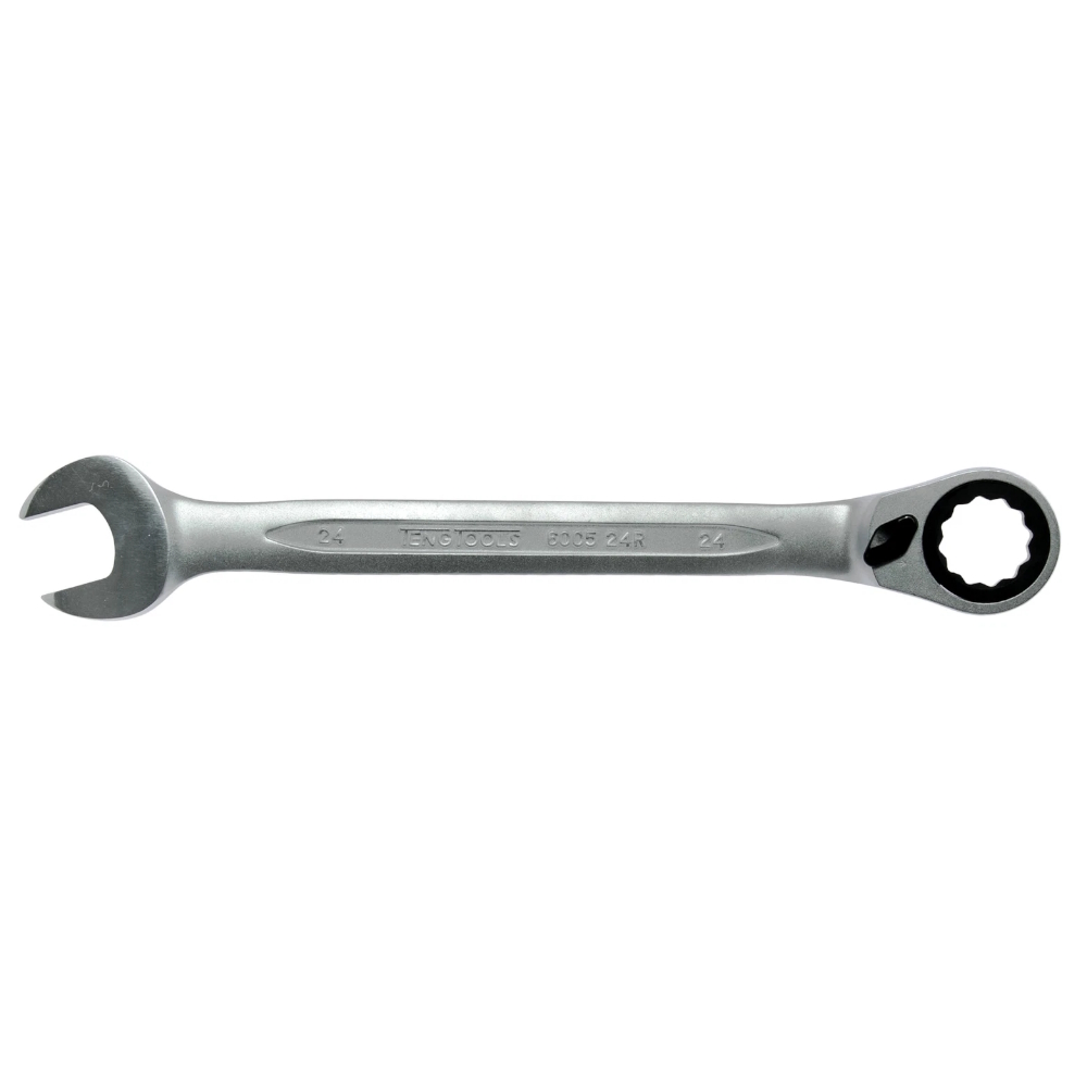 U-ring skraldenøgle lavet af kromvanadiumstål. Kombineret bloknøgle og 12-punkts ringskraldenøgle. Skraldenøglefunktionen kan indstilles til højre- eller venstregående træk. 12-punkts ringhovedet er bøjet i en 15° vinkel. Samme nøglebredde i begge ender. Matforkromet.