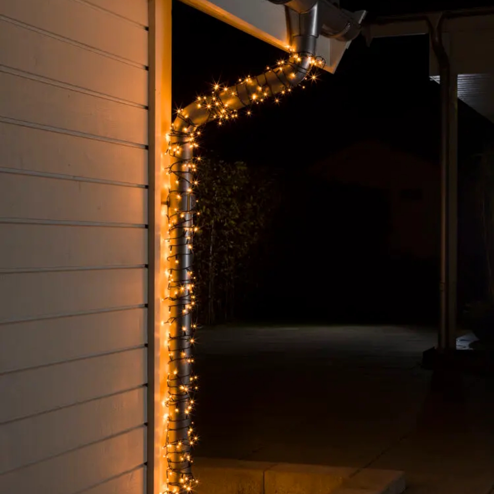 Indret med 100 ravfarvede LED-lys, der giver et stemningsfuldt skær i haven, på altanen eller terrassen. Vejrbestandigt design til udendørs brug. Perfekt til at skabe en indbydende og hyggelig atmosfære.