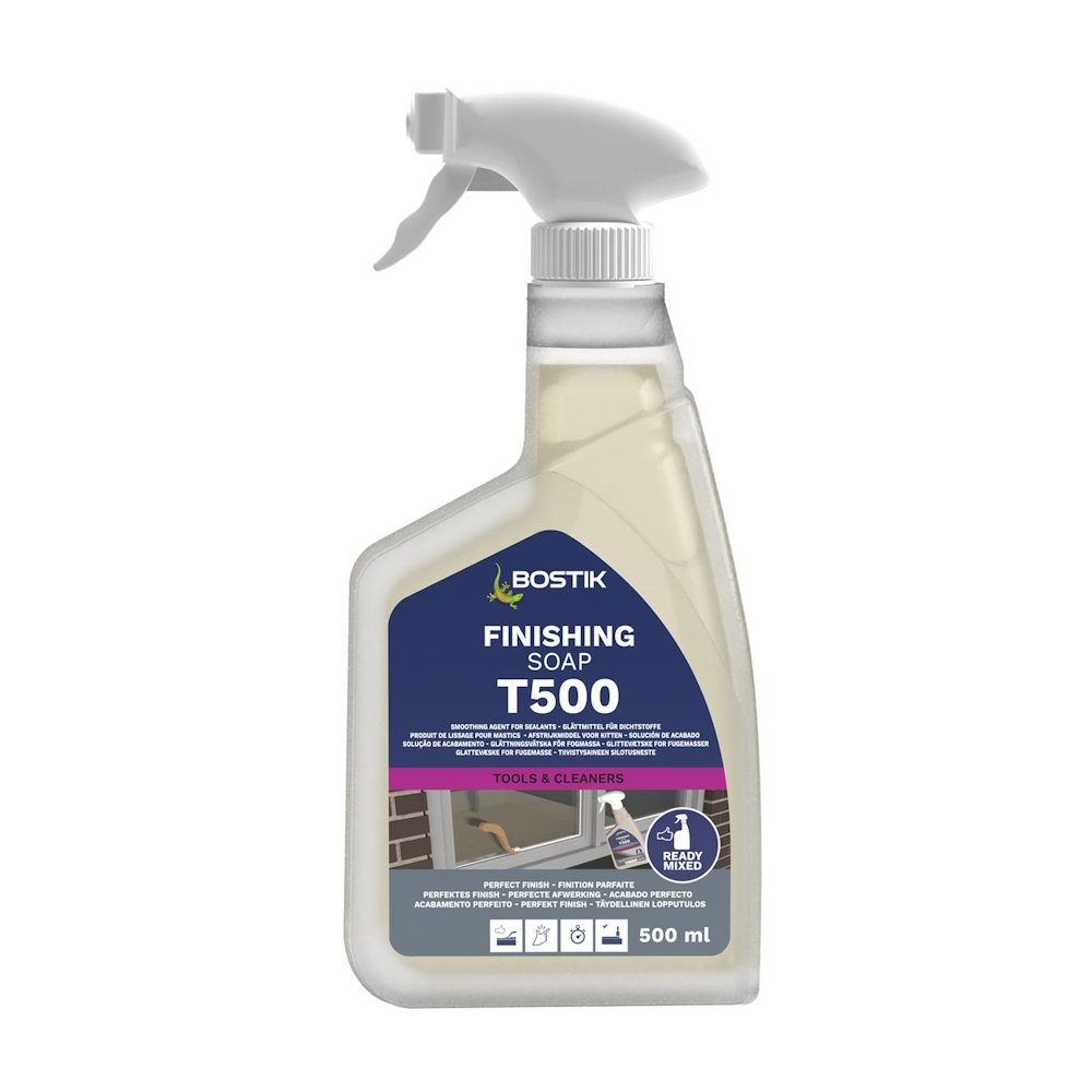 Bostik T500 Finishing Soap er en "klar til brug" biologisk nedbrydelig neutral udjævningsvæske til udglatning af påførte fugemasser inden tørring. Bostik T500 Finishing Soap er udviklet til at lette vådbearbejdning af fuger af forskellige typer (silikone, PU, akryl, hybrid osv.) og giver et perfekt resultat.