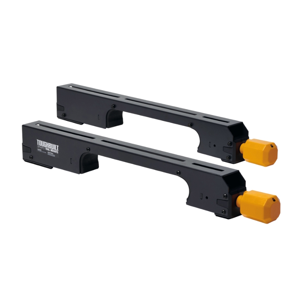 ToughBuilt universalbeslag passer til alle kap- og geringssave på markedet med bolthuller i bundpladen og bruges, når du vil fastgøre din sav til et af Toughbuilts savborde. Beslagene er også udstyret med plastikfødder, der giver dig mulighed for at bruge dem direkte på overfladen uden savbordet. Udstyret med drejelige hurtigbeslag til hurtig låsning og frigørelse fra bordet.