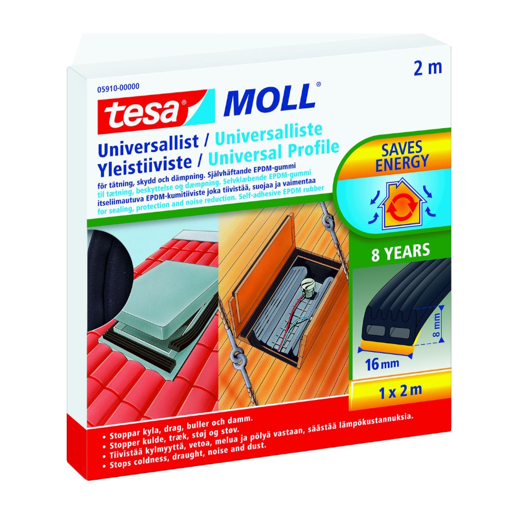 Universalstrimmel. Ribbet strimmel med lukkede celler for lav vandabsorption. Som tætning, dæmpning og beskyttelse af døre, metalskabe osv. Meget god alders- og vejrbestandighed. Levetid op til 8 år. Til mellemrum maks. 4mm.