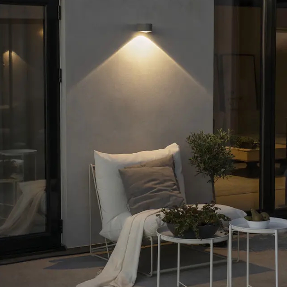 Gela er en flot facadebelysning, der giver et effektivt nedadgående lys. Malet mørkegrå aluminium og indbygget 6W LED.
