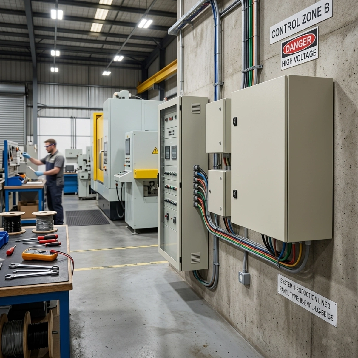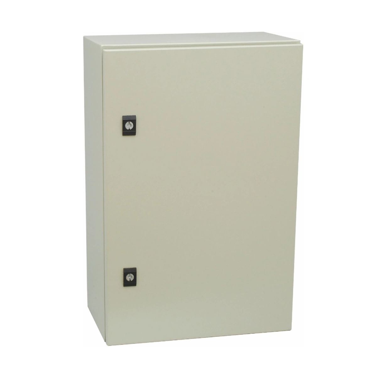 Vægmonteret apparatskab. Fremstillet af 1,2 mm stålplade, der er pulverlakeret både indvendigt og udvendigt. Dette fleksible apparatskab har vendbare hængsler til valgfri højre- eller venstrehængsling samt en praktisk flangeåbning i bunden for nem kabelgennemføring. Leveres inklusiv varmgalvaniseret 1,5 mm montageplade, dækflange i forzinket stålplade og vægbeslag.