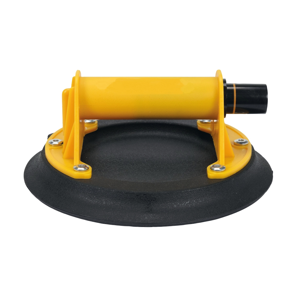 Vakuumløfter i ABS med pumpe og 204 mm gummisugekop til løft af glatte overflader såsom glas, metal og plademateriale.