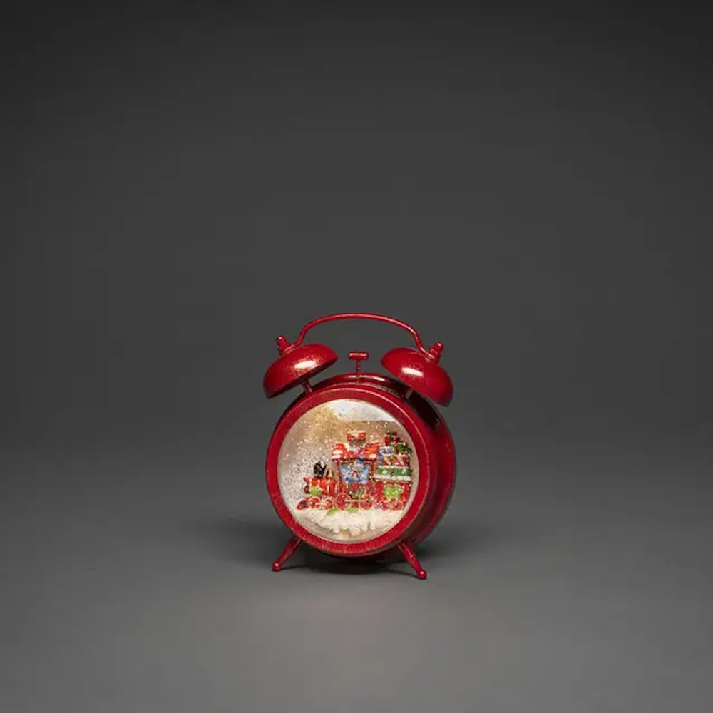 Indstil vækkeuret med et rødt vækkeur med en snemand, der kører et juletog. Glimmeret hvirvler som en snekugle og skaber en vidunderlig julestemning. Varmhvid LED-belysning og udstyret med en praktisk 5-timers timer og batteridrift for nem placering.