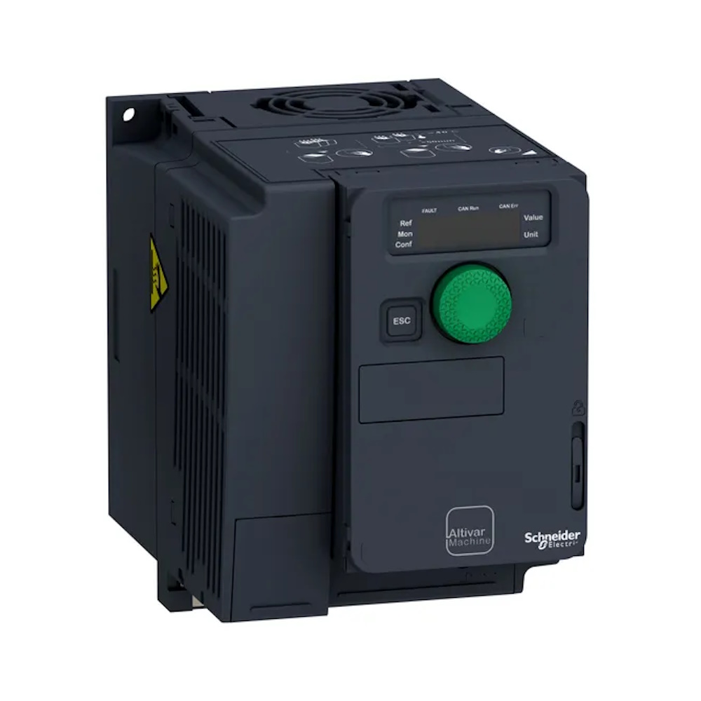 Denne Altivar 320 frekvensomformer kan drive 3-fasede synkrone og asynkrone motorer, Den fungerer ved en nominel effekt på op til 1,1 kW/1,5 hk.