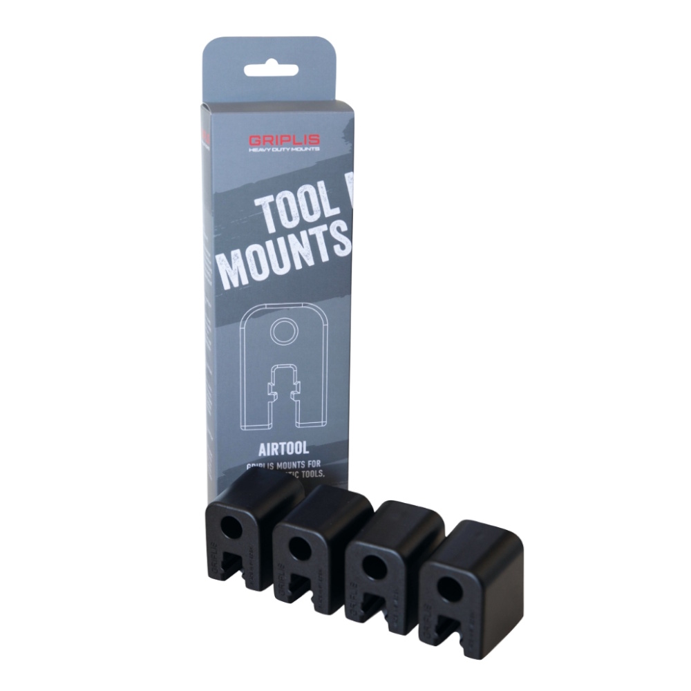 Maskinbeslag specielt tilpasset til ophængning af batteridrevne værktøjer. Beslagene er lavet af sprøjtestøbt genanvendelig plast.