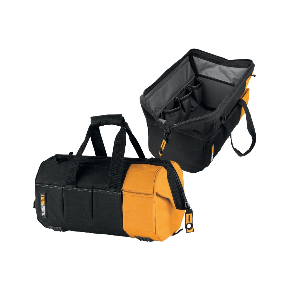 ToughBuilt 40cm Massive Mouth-tasken med den patentanmeldte åbning er virkelig bred for optimal tilgængelighed. Den unikke ottekantede form med stiv hård plastik i HardBody-foret beskytter alt indeni og holder formen. Leveres med låsbar lynlås for sikkerhed. Alsidige og fleksible lommer og løkker på både indersiden og ydersiden holder dine værktøjer og forsyninger sikkert på plads. Dens kompakte størrelse er perfekt til mindre projekter. Lavet af robuste materialer af høj kvalitet og kraftig nitteforstærkning, der modstår de høje krav fra professionelle.